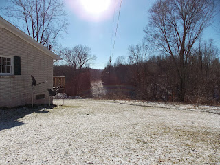 Anyway, Bo and I went for a couple of walks today. I took him toward the creek and back up to the hickory tree before I headed out. I figured it was only fair since I was putting him in the basement for a couple of hours. And then when I got home I walked him a little to burn some of his energy off. He's always manic when he comes back inside after being in the basement, I call him Frog-Boy because he reaches the end of his leash and keeps trying to run.... he looks like a frog jumping. I can't wait until we have a fence so I can let him run until his heart's content. As it is, he's subject to my whims (which vary greatly according to how cold it is out there). He's all muscly and lean but I know his breed likes to be more active than he is and I can tell he gets bored sometimes.